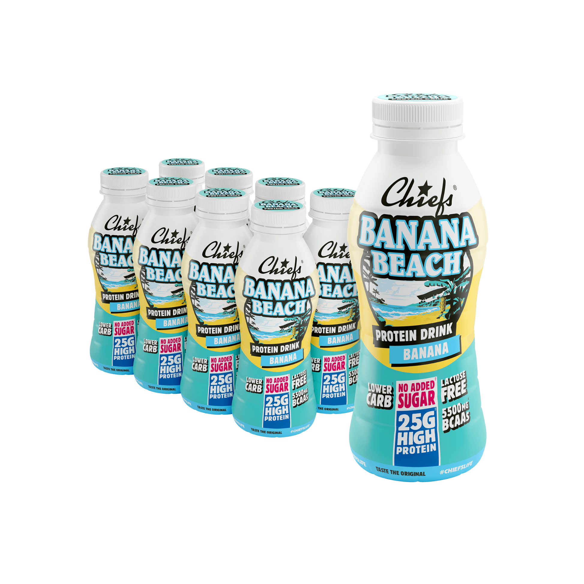 Chiefs bringt zusammen, was sonst selten funktioniert: cremiger Geschmack und starke Makros. Mit 27 g hochwertigem Milchprotein, ohne Zuckerzusatz und laktosefrei ist dieser Drink dein idealer Proteinboost für unterwegs, nach dem Training oder einfach zwischendurch.